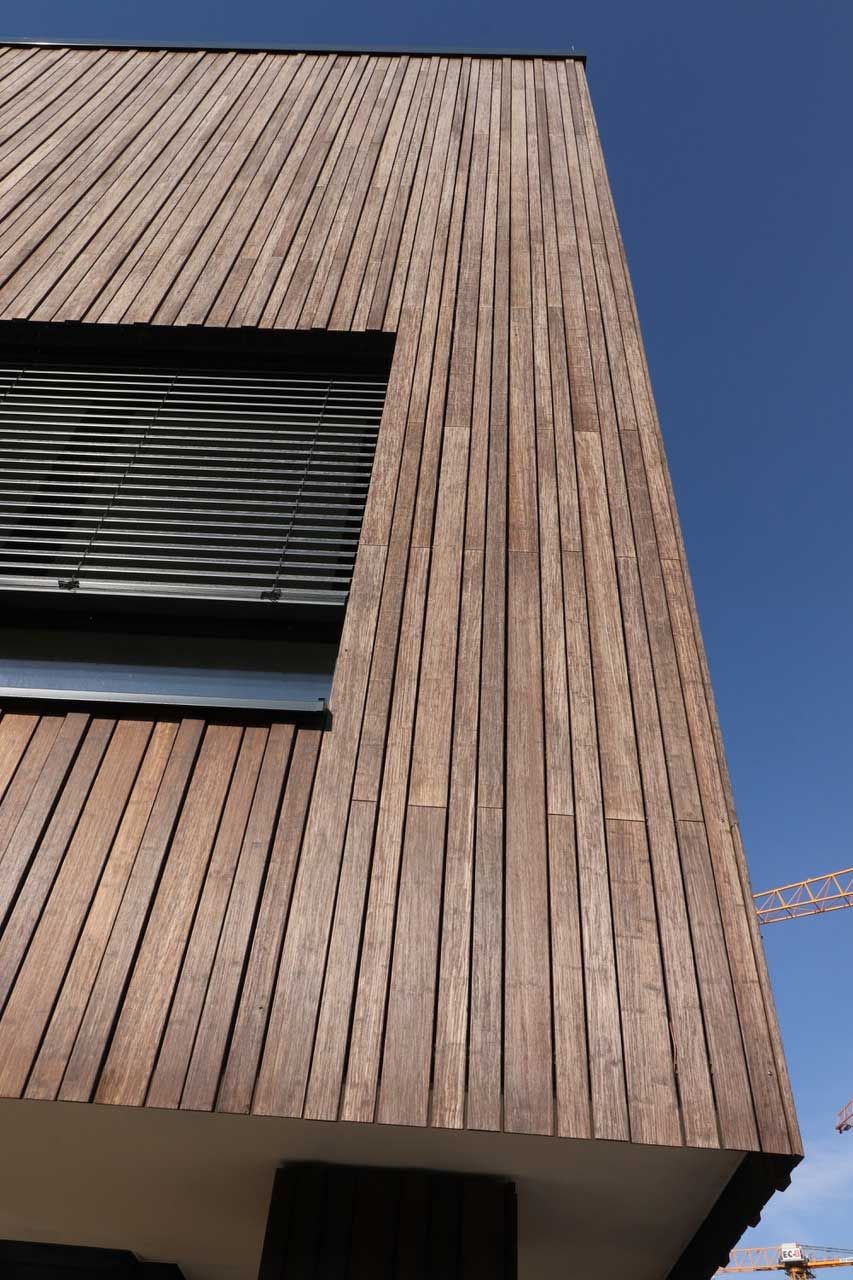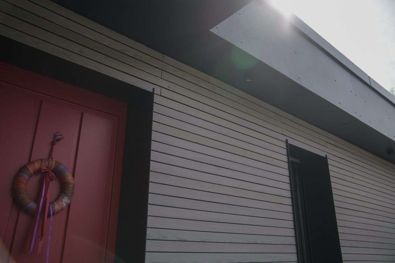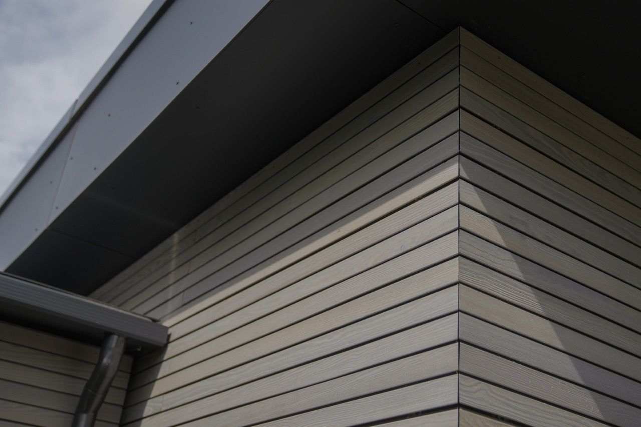 Holzfassade ausgeführt in einer Boden- Deckel-Schalung in sibirischer Lärche